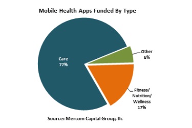 Care-focused apps led with the most deals followed by fitness/wellness/nutritions apps. The focus of care apps that received funding ranged from diabetes, cancer, parkinsons, cardiac health, chronic disease care and medication tracking among others.